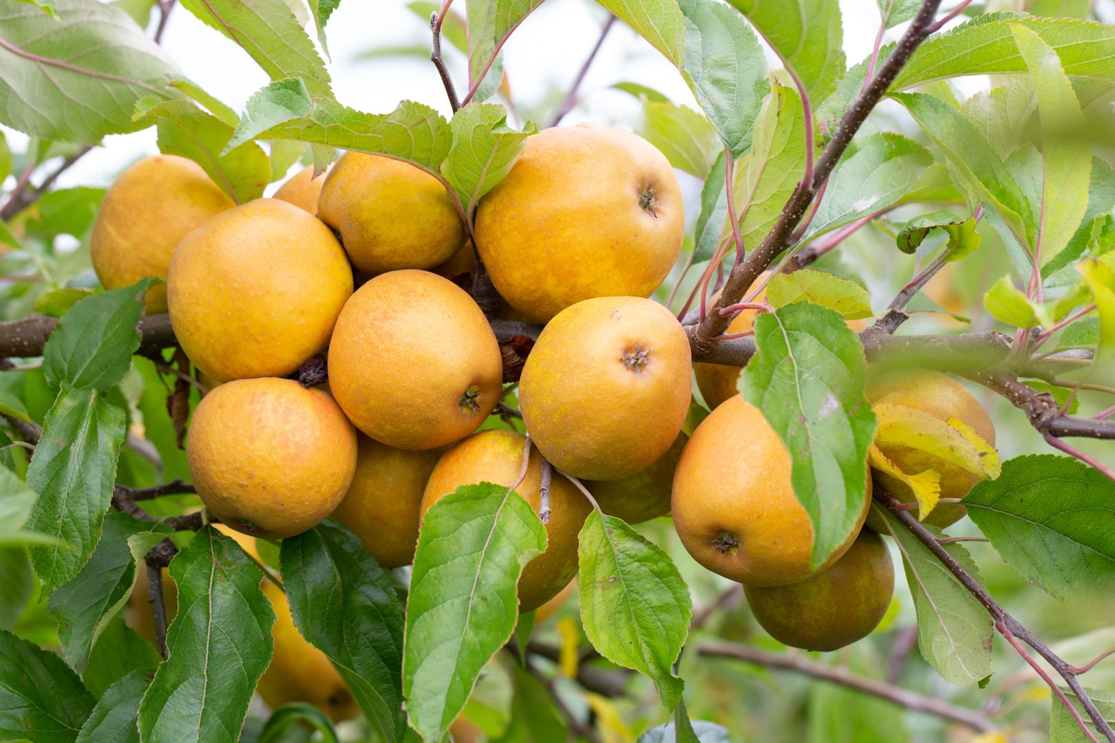 Description: Herefordshire Russet is a modern variety that is the russet with a Cox-like flavour. Fruits are deep golden amber russetted. Exceptional eating quality with a rich, aromatic flavour and a winner in ‘taste testings’ around the country. The tree is well spurred, well shaped and moderately vigorous. The fruit set is heavy with small to medium sized fruit. A genuine resemblance to Cox but much easier to grow, far less troublesome and disease resistant. A very hardy variety that can be grown succesfully in any part of the UK.