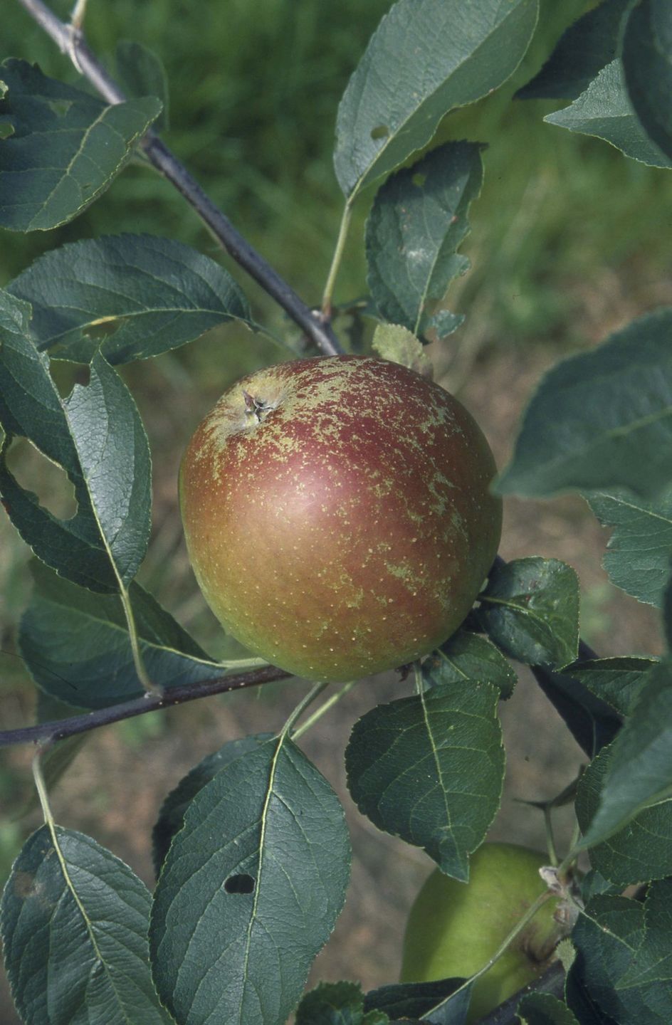A large fruit, green with brownish red flush and russet patches. Very rich flavour with a crisp, juicy texture. Read more