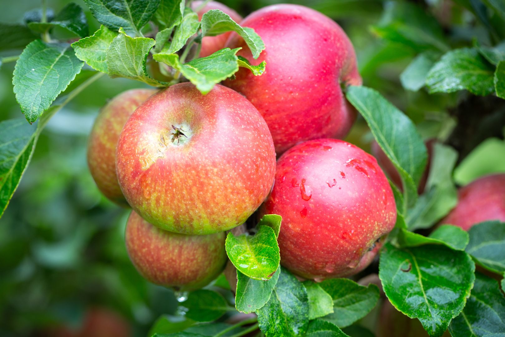 Bright red flush. Crisp and juicy with a hint of strawberry. An excellent early dessert apple with good disease resistance.