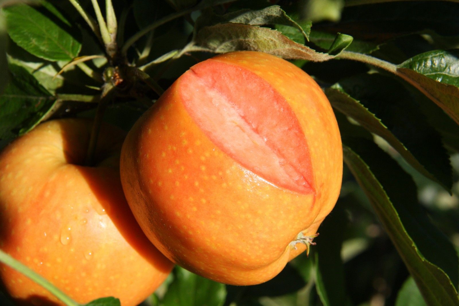 Description: Surprize is an exceptional new apple that is quite unlike any that have come before. Brilliantly glossy orange skin with pink flesh. Crisp, juicy and very delicious! Won 'Gold' at the National Plant Show in 2017 for best new variety.