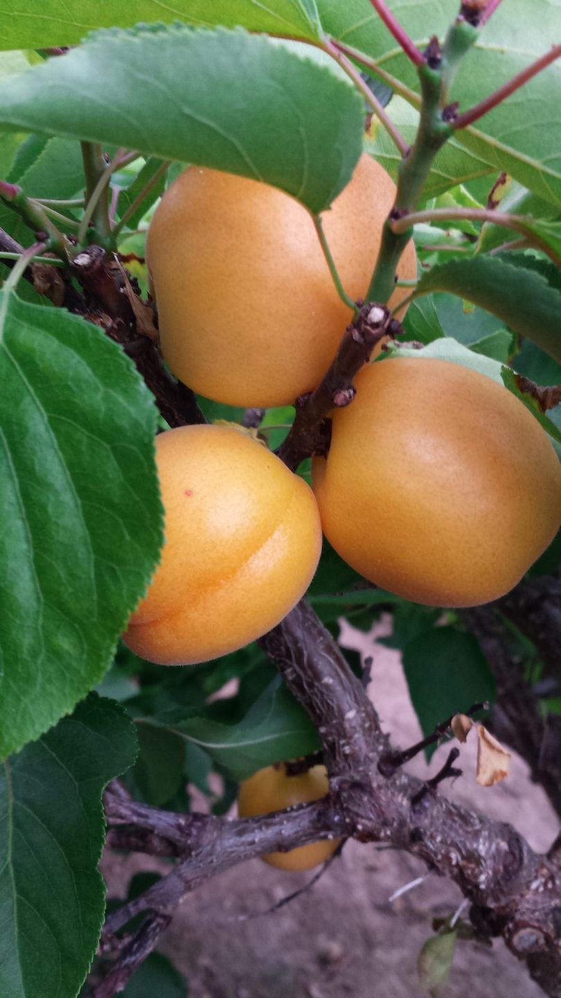 Description: Garden Aprigold is a genetic dwarf variety, so perfect for patios and small spaces. Produces full-sized golden-yellow fruits that are delicious! Flesh is succulent, sweet and fresh. Known for it's unique leaves which have red tinged growing tips before turing green. Garden Aprigold has delicate pale pink blossom that appears in the spring.