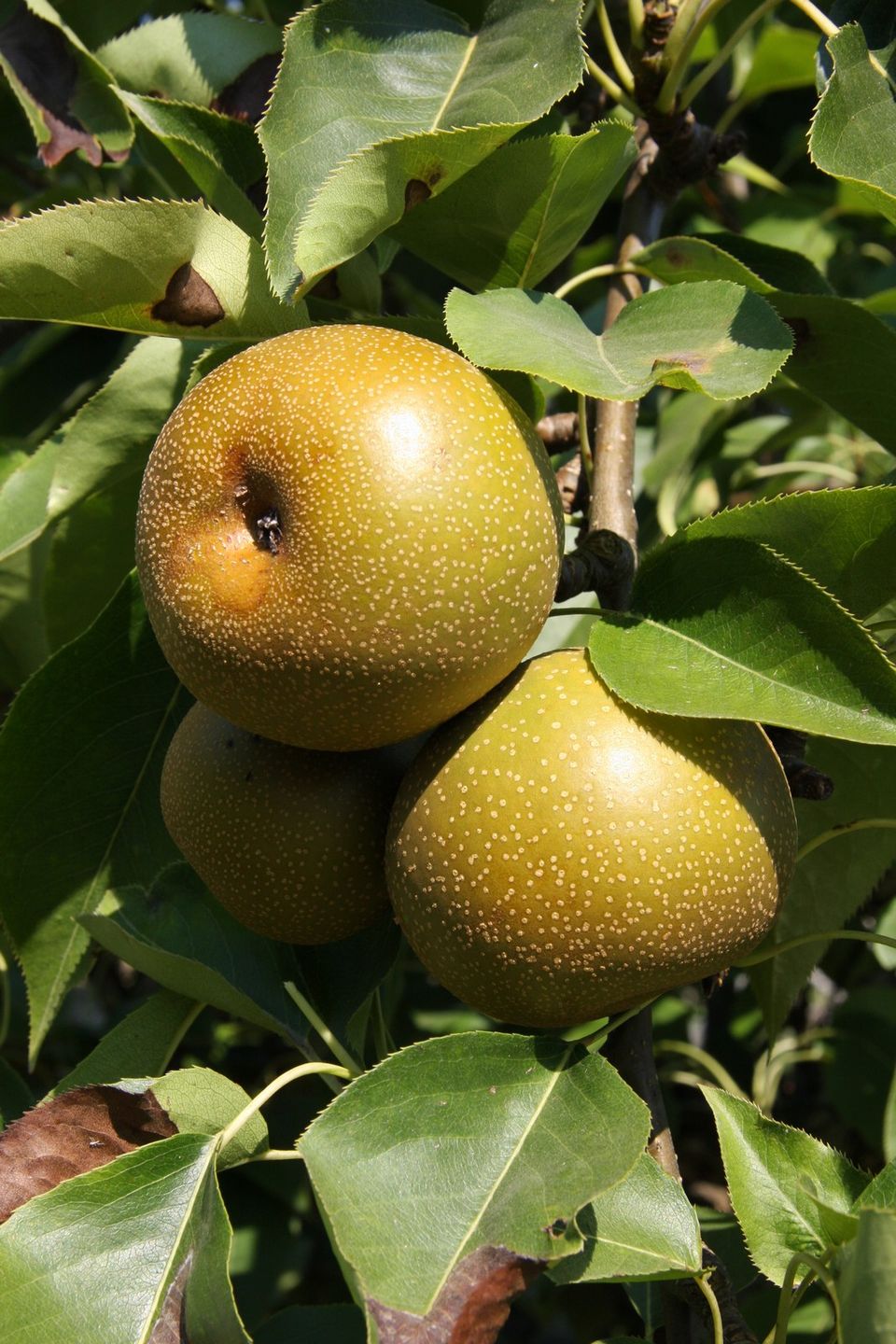 Asian Pear which produces huge, round, russet-covered pears which are exceptionally crisp and juicy.