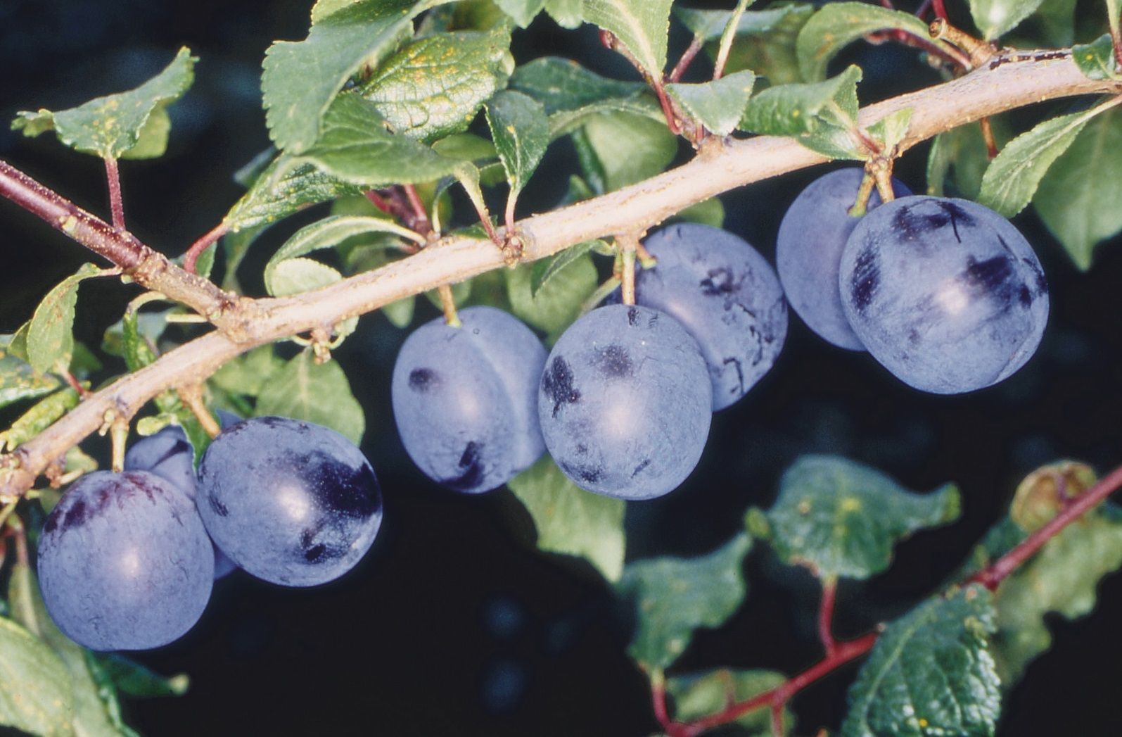 Description: Langley Bullace is a late, heavy cropping variety. Small round to round-oblong, blue-black fruits with a good bloom. Sharp in taste but delicious when cooked into a pudding, jam or cheese! The tree itself has interesting twisted branches. The best of the bullaces.