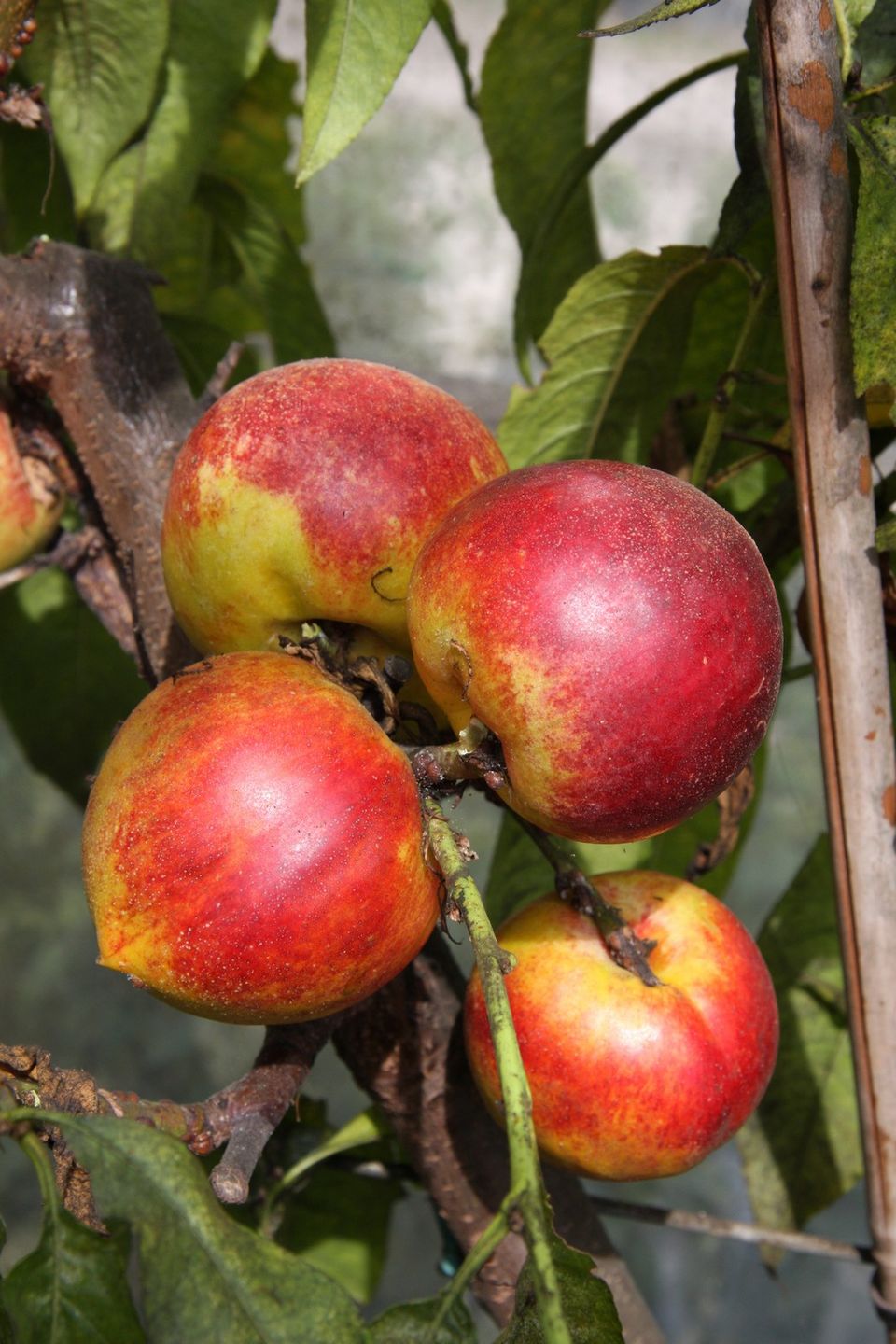 Nectarines are recommended to be grown under cover as they are susceptible to peach leaf curl in the UK. The best way to avoid this is to cover during bud break from January through to May.