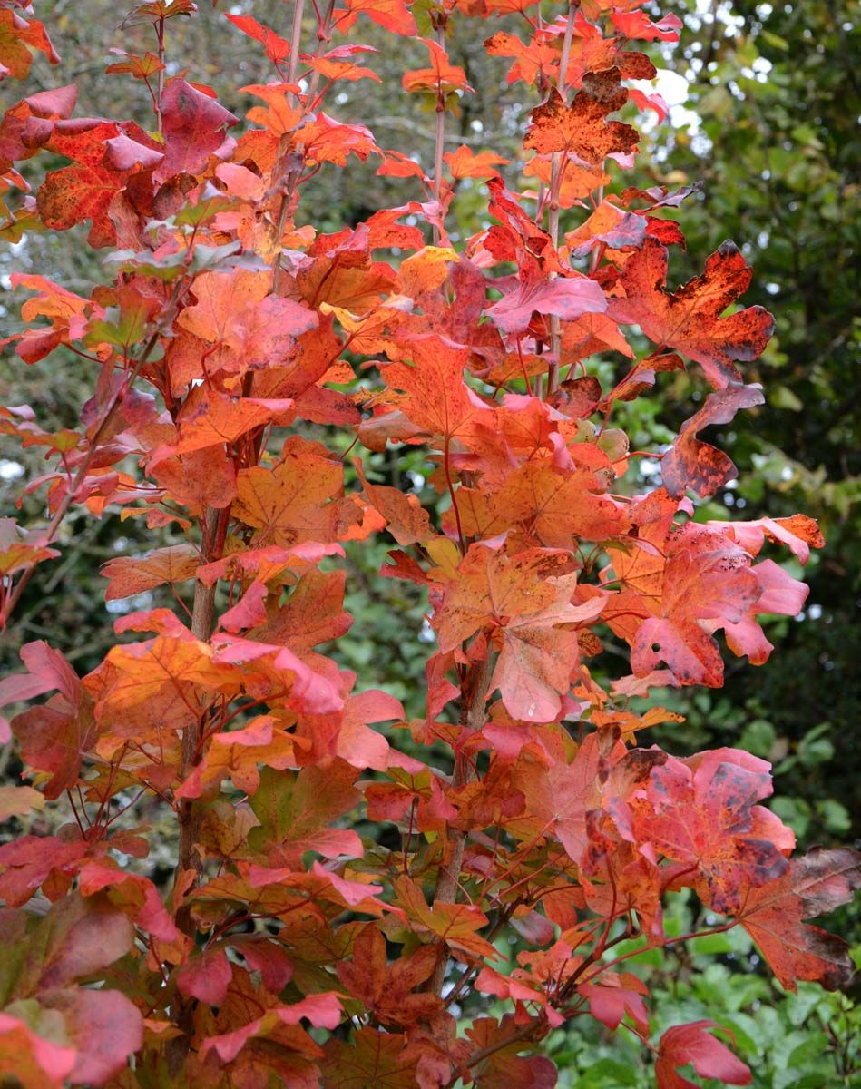 Five lobed leaves pinkish-red turn yellow, gold, russet, or even dark purple in autumn. Very hardy. Read more