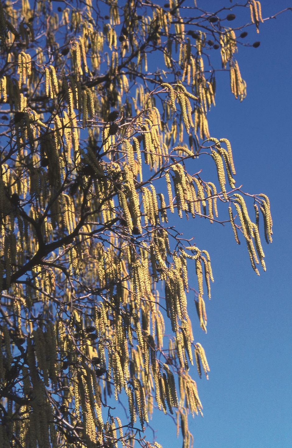 Dark fissured bark, dark green, serrated edged leaves. Catkins appear February-April Read more