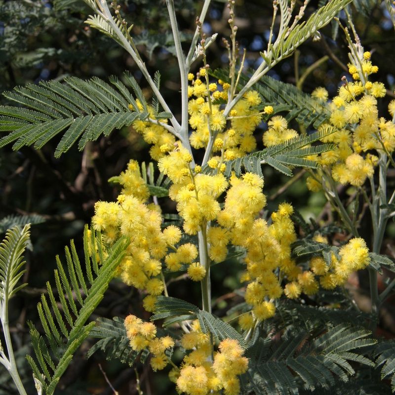 Description: Acacia dealbata, also known as The Silver Wattle is an upright, evergreen tree of open habit. The double pinnate bluish-green leaves have a stunning silvery sheen. Clusters of small, rounded, highly fragrant yellow flowers appear in January borne in terminal clusters, a vibrant burst of sunshine throughout the winter months! Bees and insects love the mimosa flowers, it's a valuable source of winter fuel for the bees.