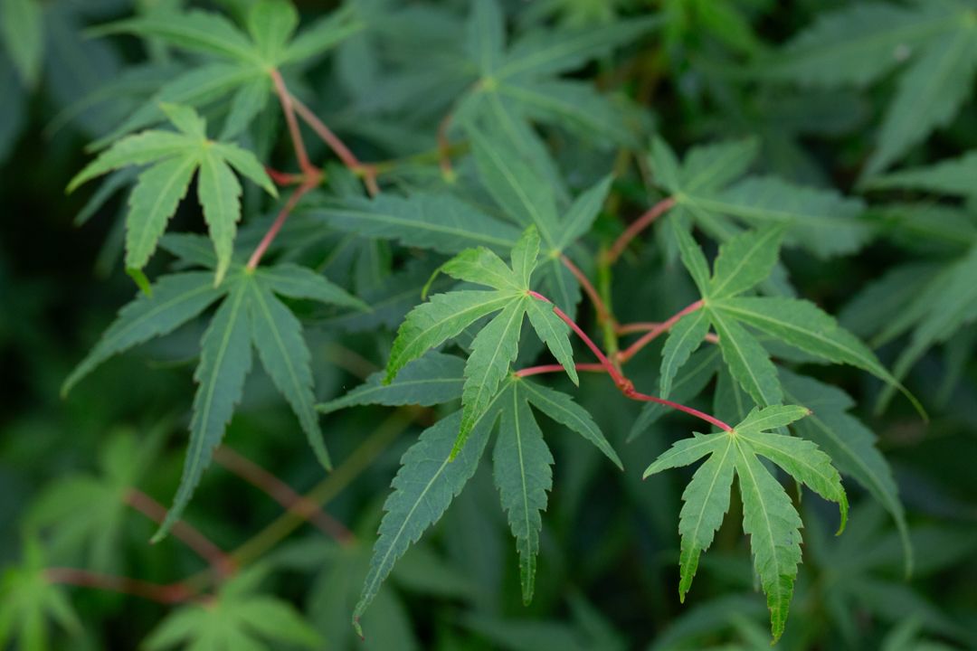 A strong growing maple which develops finely dissected, purple leaves that resemble the colour of a garnet stone.
