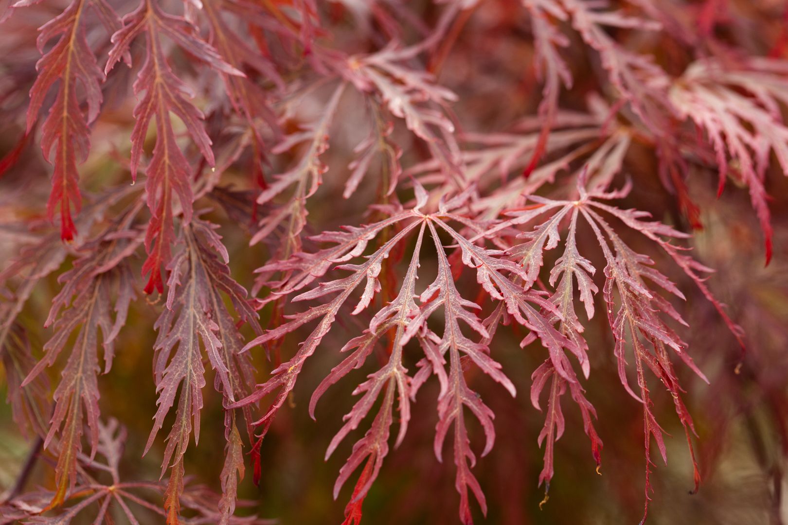 Bright green, finely cut leaves, tinged bright red when young. Reliable orange, yellow and crimson autumn colours.