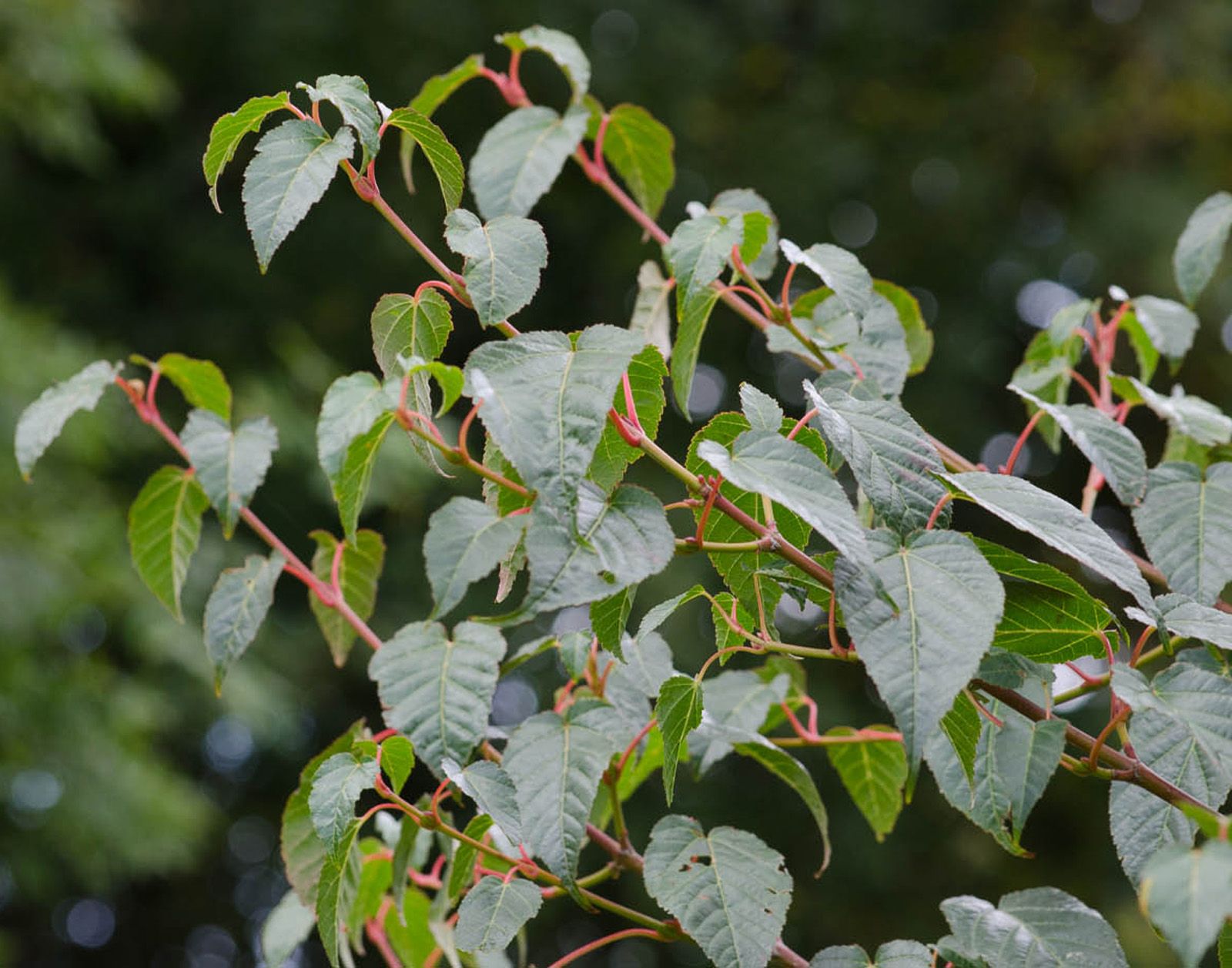 Description: Acer caudatifolium is also known as Acer kawakamii or Snake-bark Maple. A small to medium-sized, densely branched tree with smooth green to reddish green bark marked with faint white stripes. The dull green leaves turn red, orange and yellow in autumn. Racemes of small purple to white flowers in spring are followed by reddish winged fruits in autumn that turn yellow as they mature.