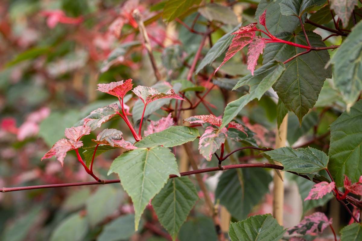 Leaves have attractive pink variegation with deep red young shoots. Colourful winter bark, exceptional small tree. Read more