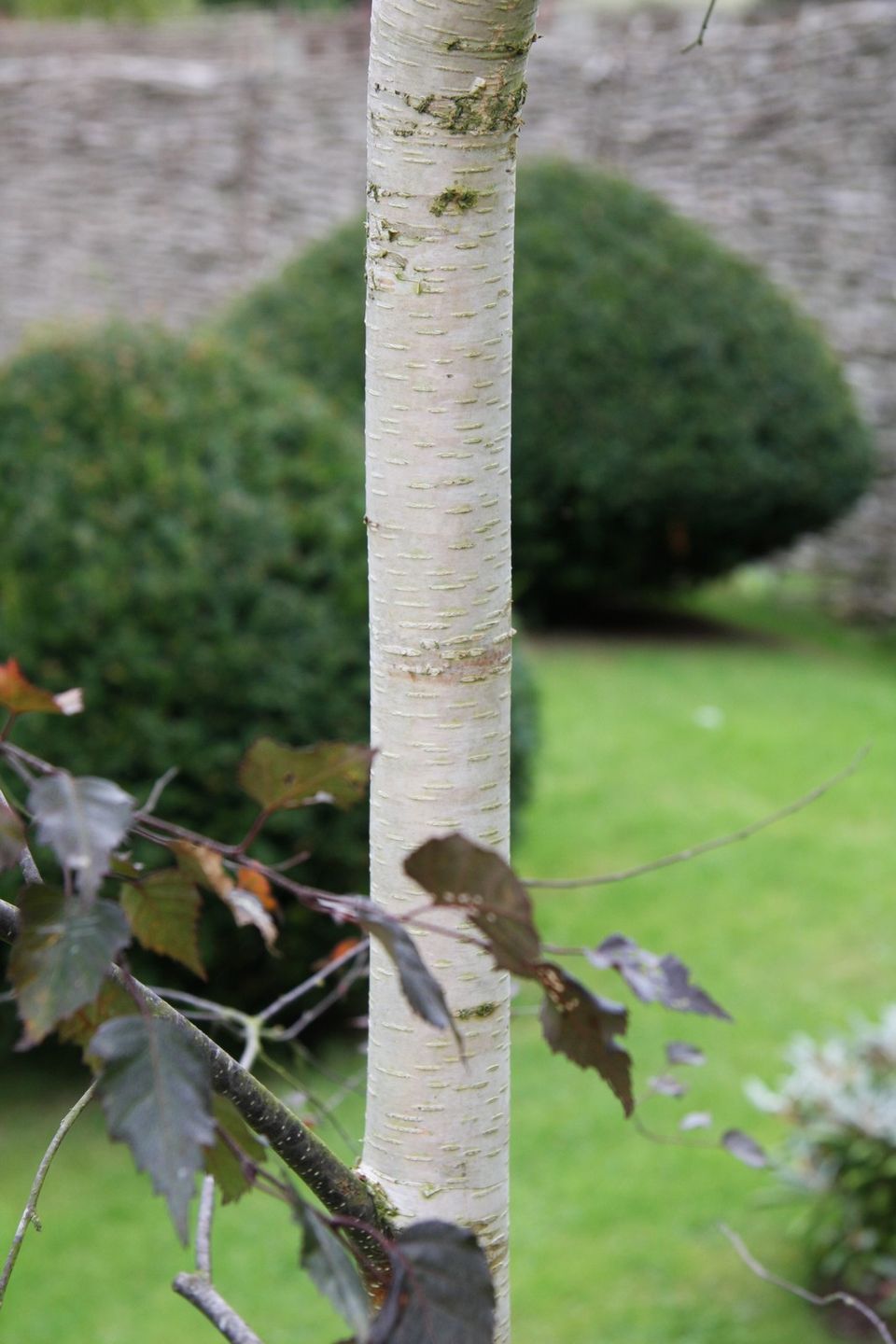Description: Betula pendula 'Royal Frost'® is a recent introduction selected for it's persistent, rich burgundy leaves. The white stemmed bark is complimented with cinnamon hues. Yellow, orange and red colours appear in the autumn providing a stunning, additional feature to this tree. Betula pendula 'Royal Frost'® is one of the best birch for variety of colour.