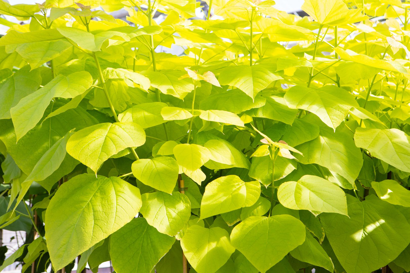 Catalpa (Indian bean) Growing Tips: Grow in a moist but well-drained, fertile soil in sun or part shade. Shelter from strong winds as these may shred the large leaves. Protect from late spring frosts when young. Hard prune every winter to increase leaf size.