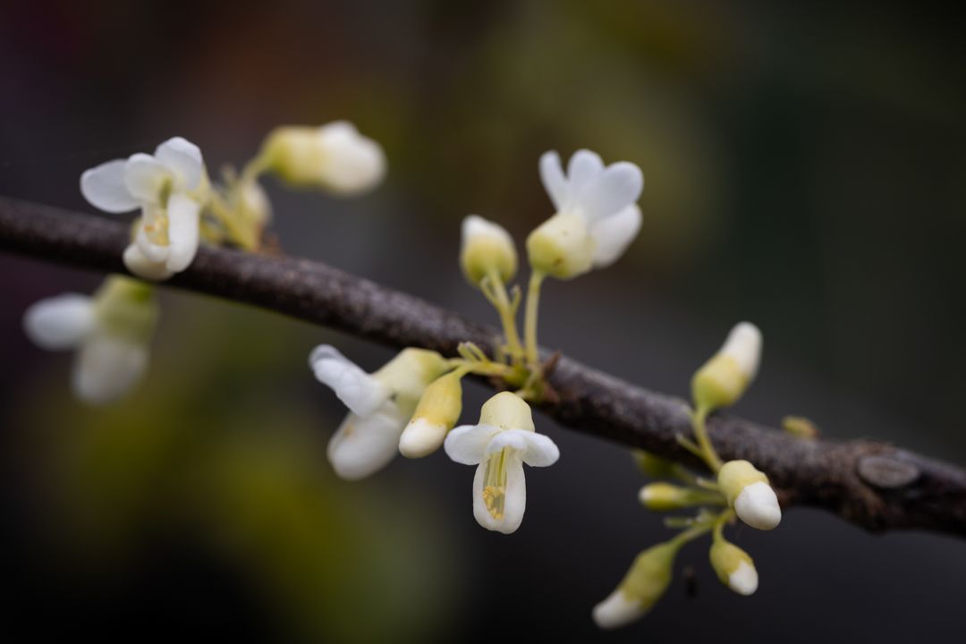 Description: Cercis 'Texas White' is a spreading often multi-stemmed tree of medium sized. Particularly large, milky white flowers are borne in clusters on bare stems in spring. Followed by several long dangling reddish seed pods which can be up to an inch long! The waxy, glossy leaves are green and heart shaped, emerging after flowering and turning lovely shades of yellow in the autumn.