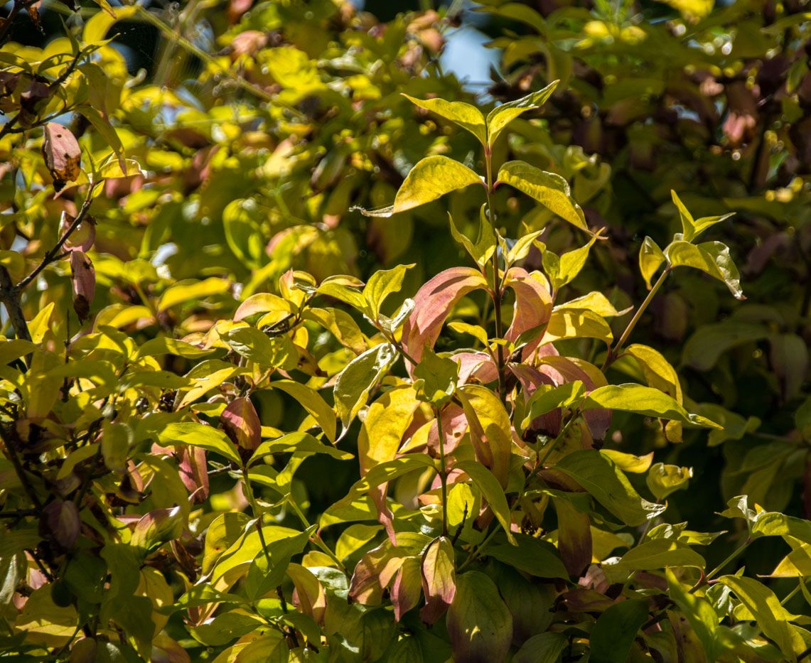 Small tree producing a profusion of pure white bracts alongside bronze, tinted green foliage. Rich autumn colours.