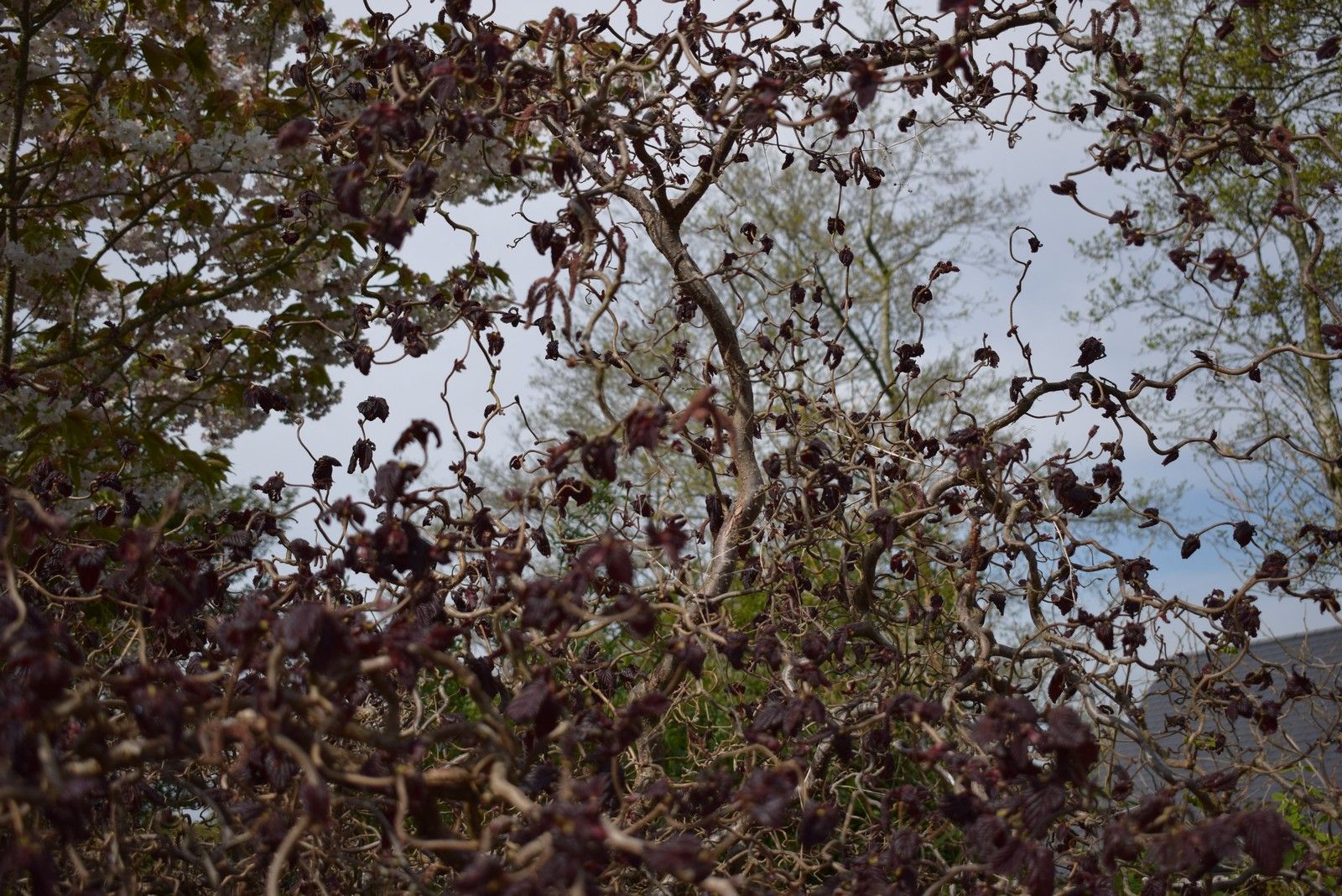 A compact hazel tree with very twisty, contorted branches which don't break easily. Catkins in spring.