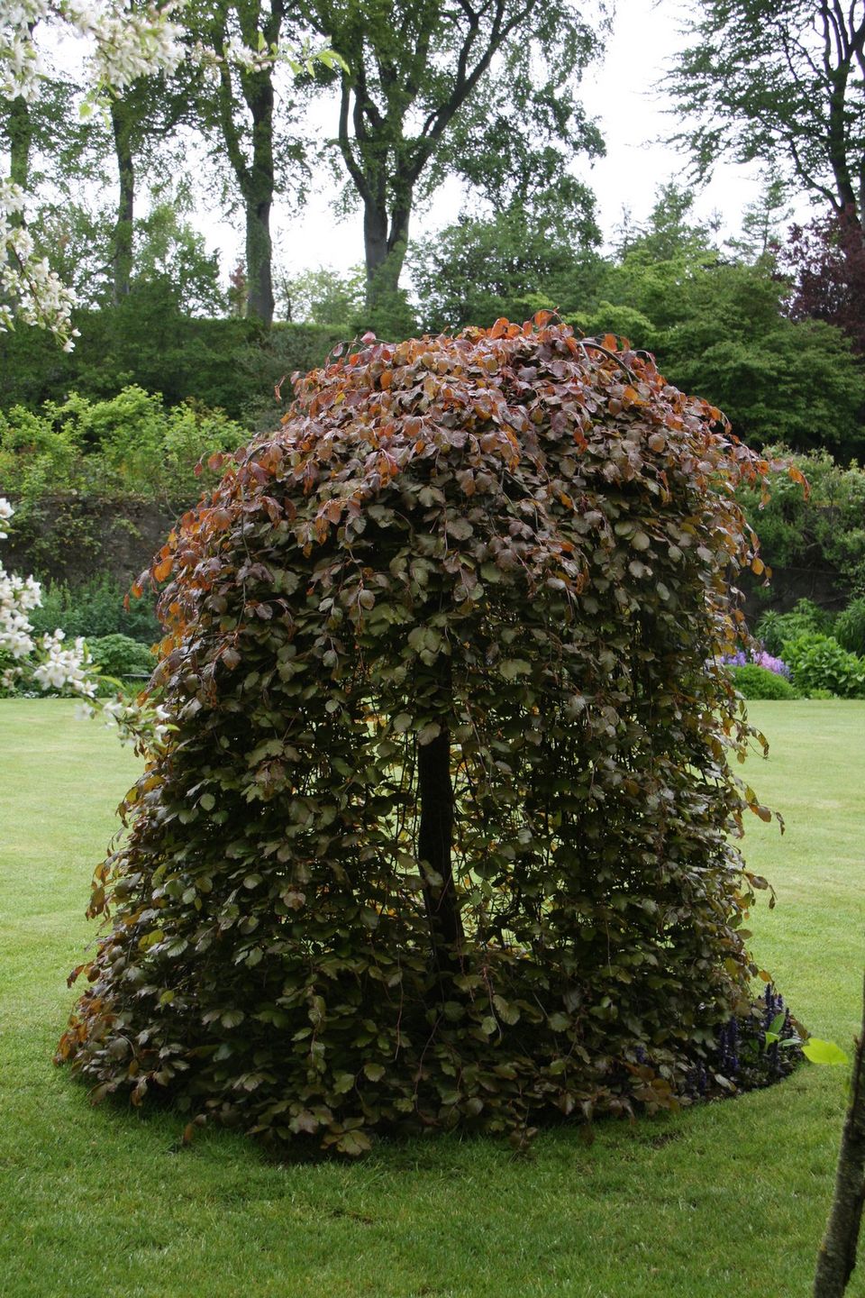 Weeping purple beech with a narrow growth habit. Leaves are rich dark purple. Height after 10yr 5m x 1.5m.
