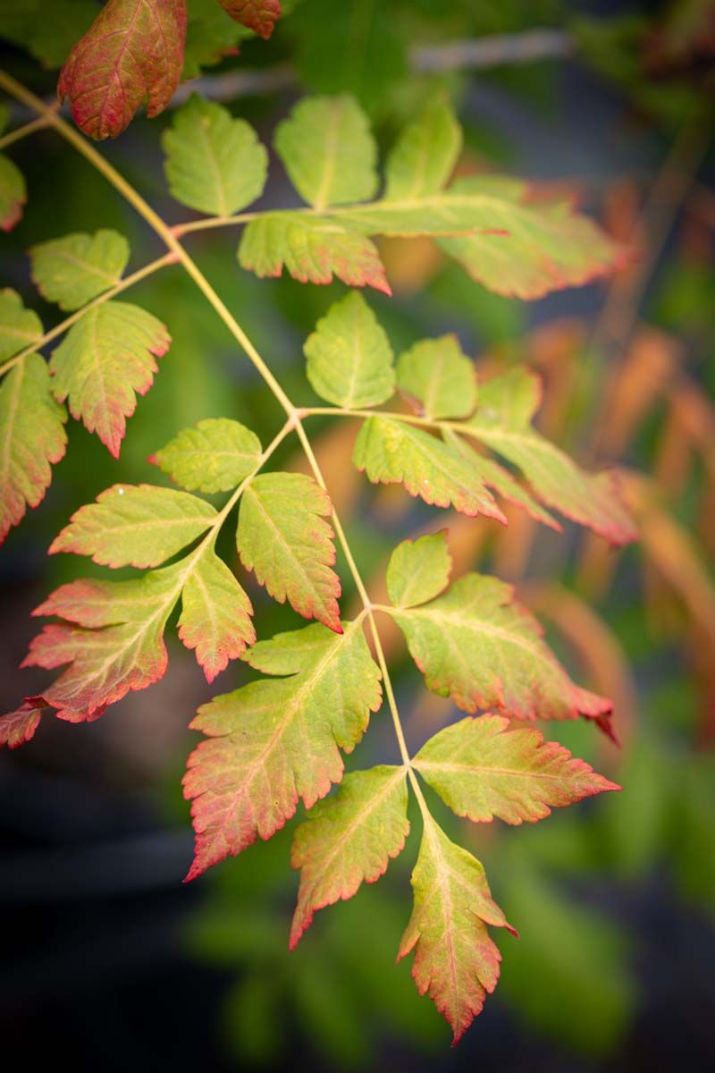 Leaves emerge bright pink, turn orange then green with red petioles. Excellent autumn colour. Read more