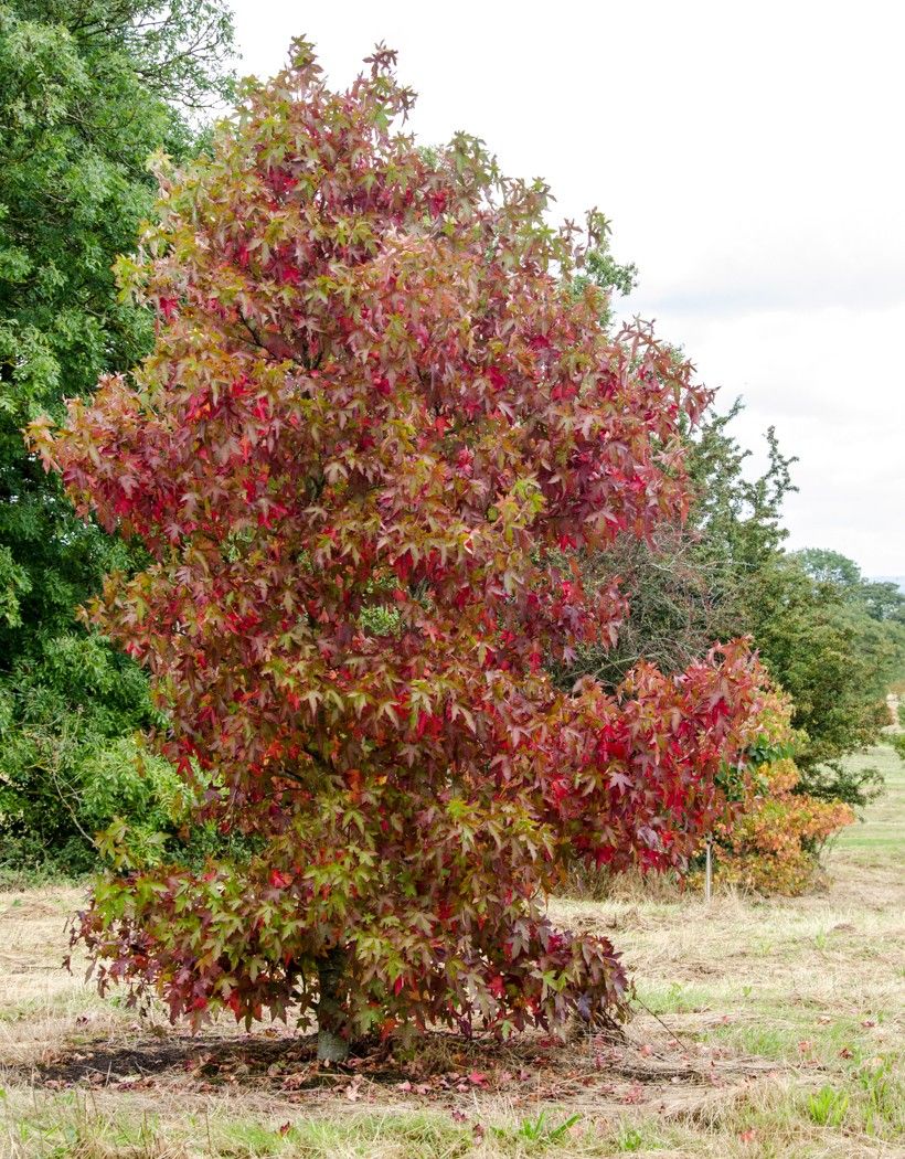 Liquidambar (Sweet Gum) Growing Tips: Liquidambar should be planted in full sun to achieve their best colour, in neutral to acid soil that is moist but well-drained. Once the trees mature, they tolerate occasional drought as well as periodic flooding. Protect from frost when young.