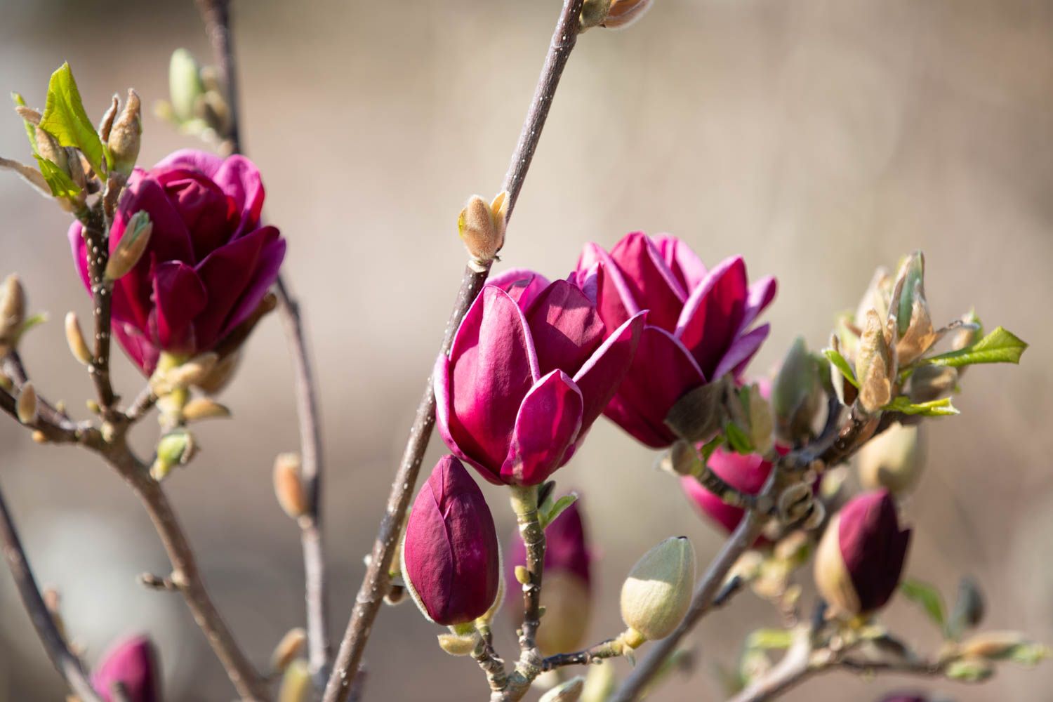 Description: Magnolia Genie is a beautiful variety with tulip shaped flowers that produce a magnificent scent. The flowers start as blackish red and open to rich maroon. Its flowering lasts for several weeks in spring, often followed by a second flowering period in mid-summer. A compact growth habit.