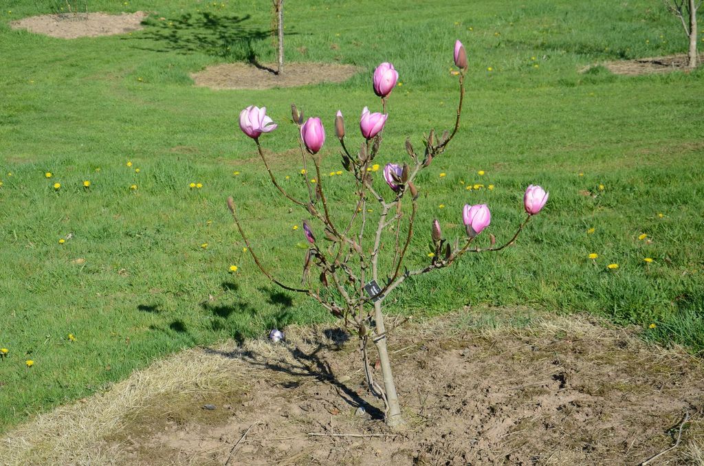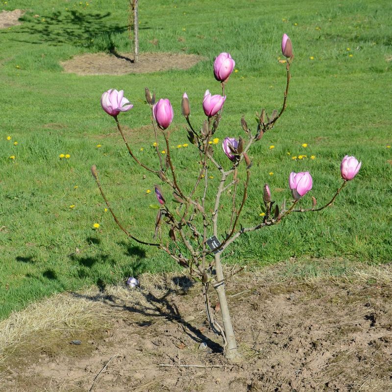 Description: Magnolia Serene is a vigorous, upright, small tree with profuse, large, bowl shaped rose-pink flowers in May along with the large leathery leaves.