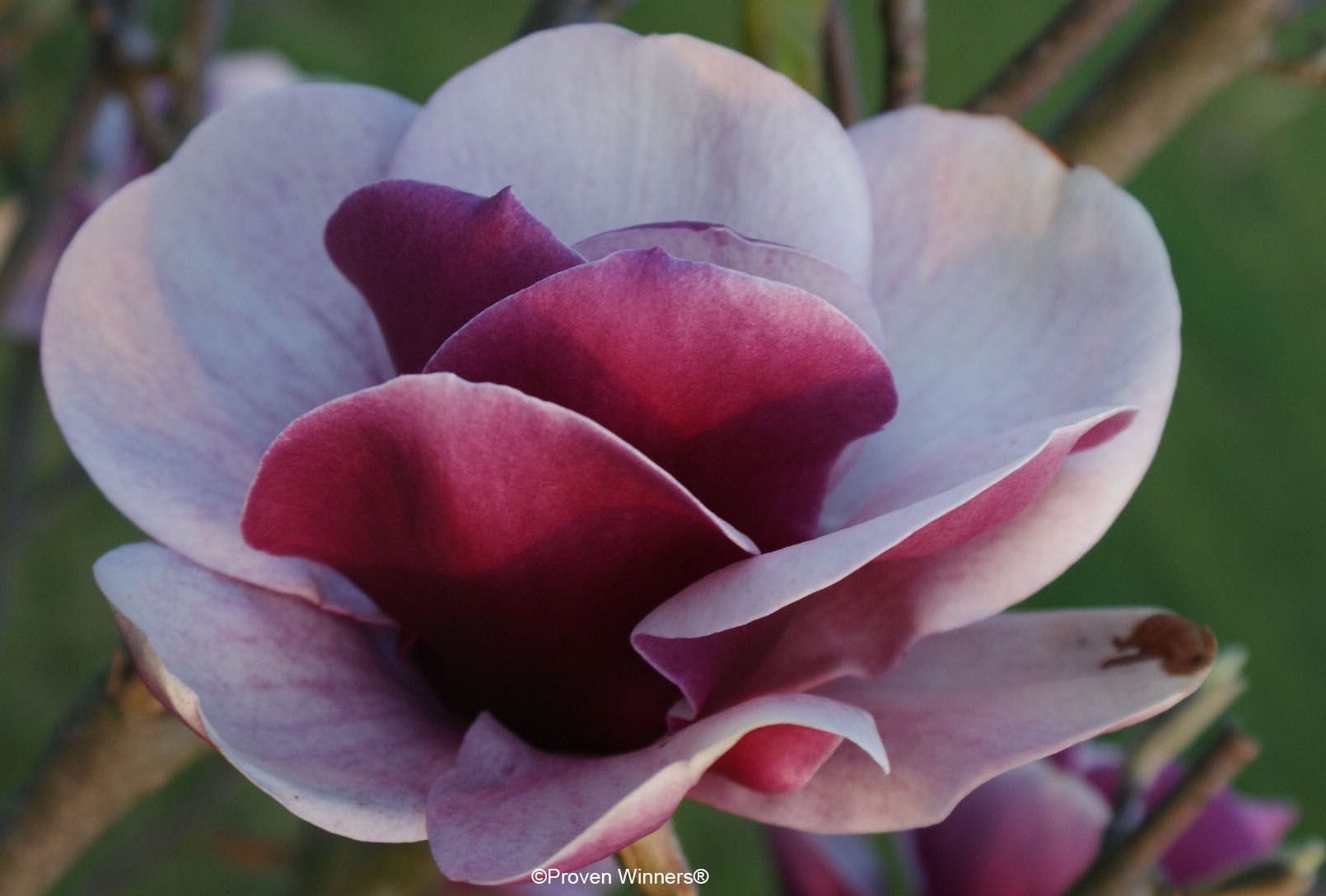 Description: Magnolia Venus is a strongly upright shrub or small tree with attractive velvety matt green leaves, flushed bronze when young. Large, fragrant, cup shaped purple pink flowers, white within. Can re-bloom in summer with a lighter shade.