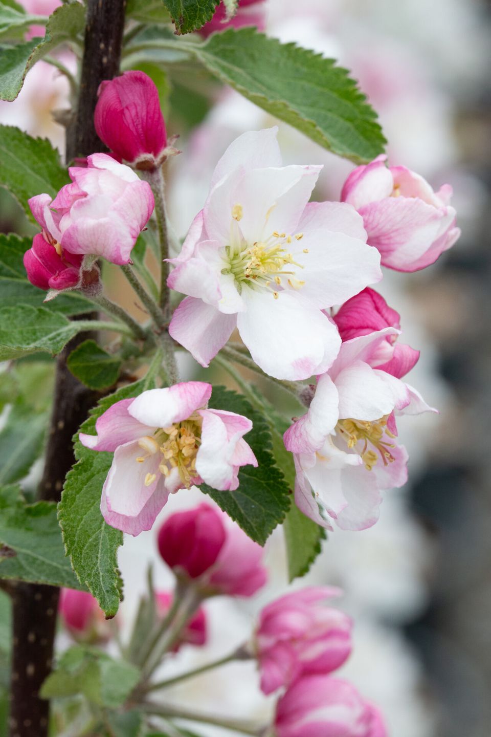 A crab apple that produces a profusion of impressive pure white blossoms in spring and pink blushed fruit in autumn.