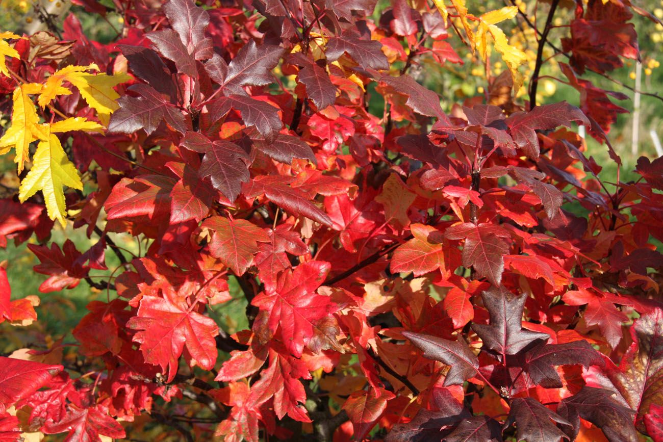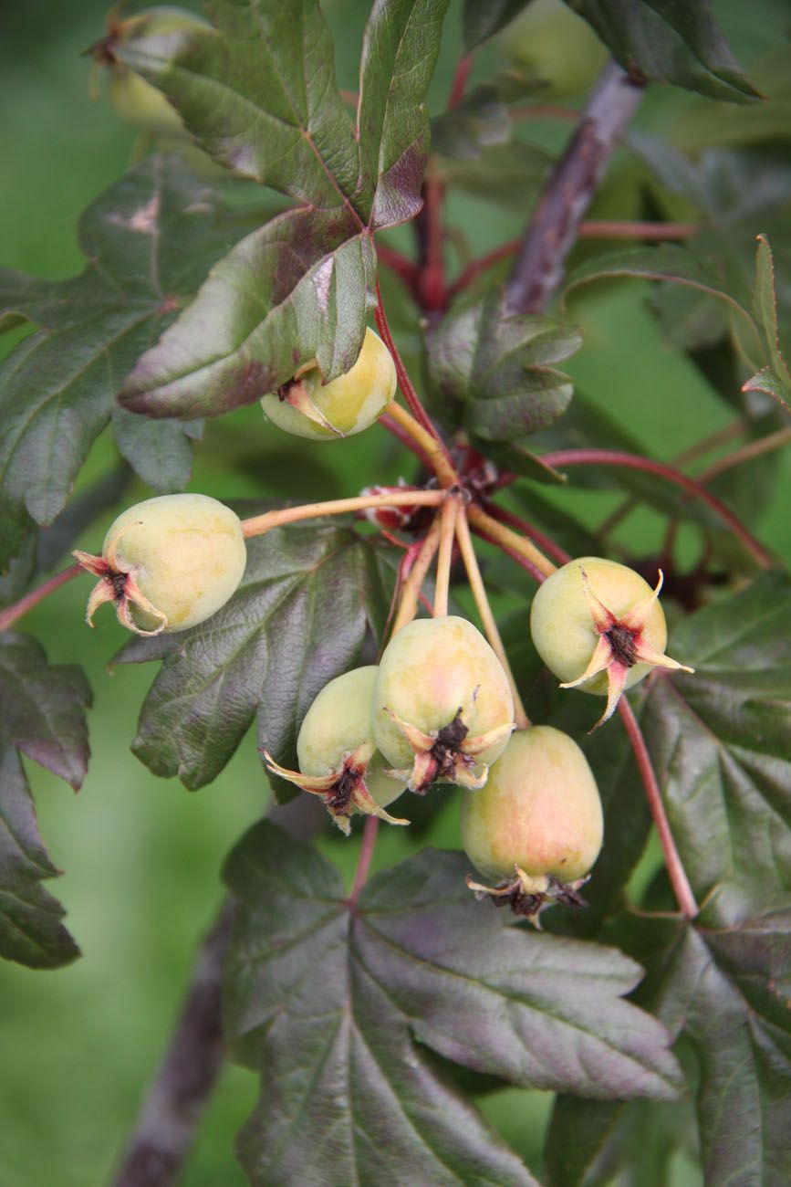 Maple like, deeply lobed green leaves and red autumn colour. Large white flowers followed by green/red fruits. Read more