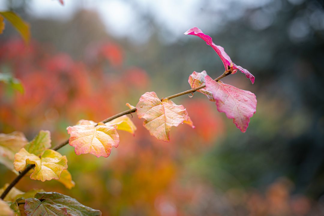 A small wide spreading tree. Clusters of crimson-gold stamen and leaves in autumn. Delicate flowers in winter.