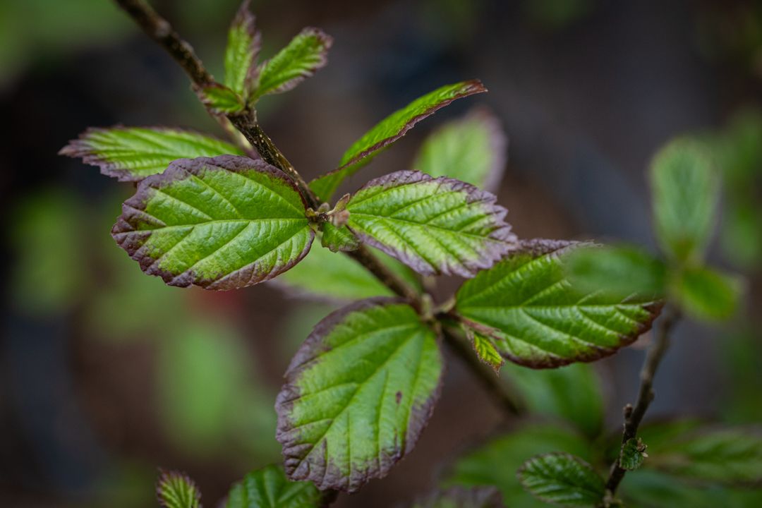 Small upright tree with flaking grey-brown bark. Bronze spring leaves and dark red and purple autumn colours.