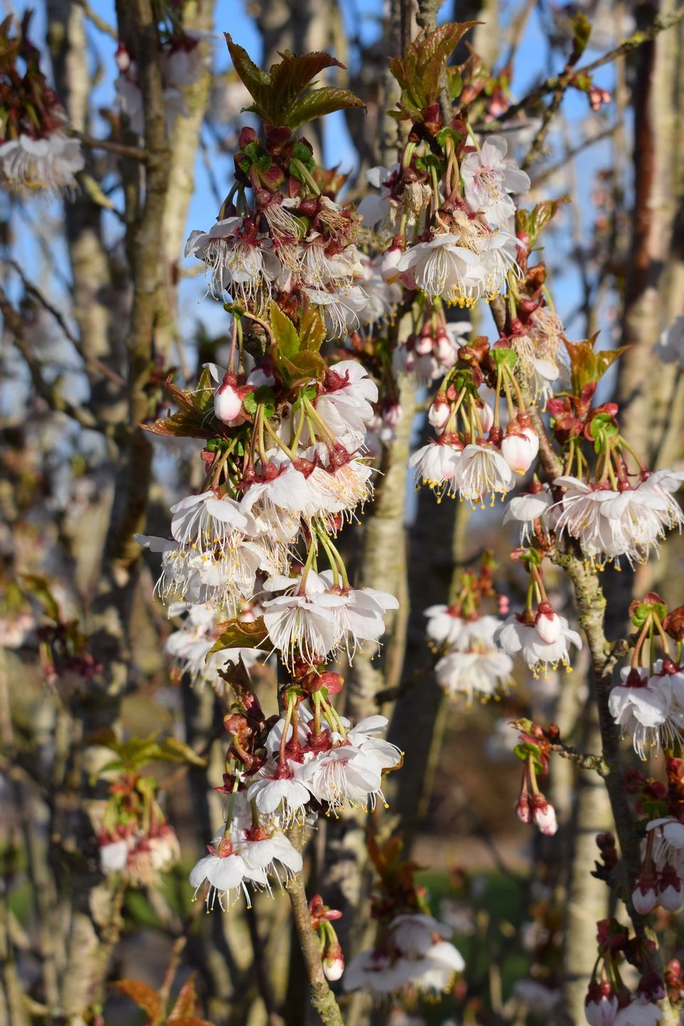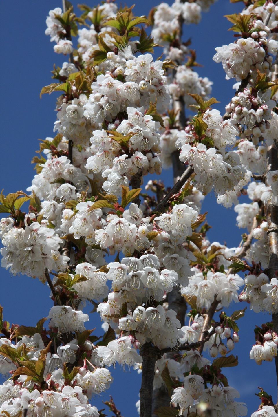 Description: Prunus Litigiosa (Tassle Cherry) is a most unusual upright tree with a columnar habit, producing clusters of small white or pink tinged flowers in April. These flowers have conspicuous protruding anthers, hence the reference to tassels.