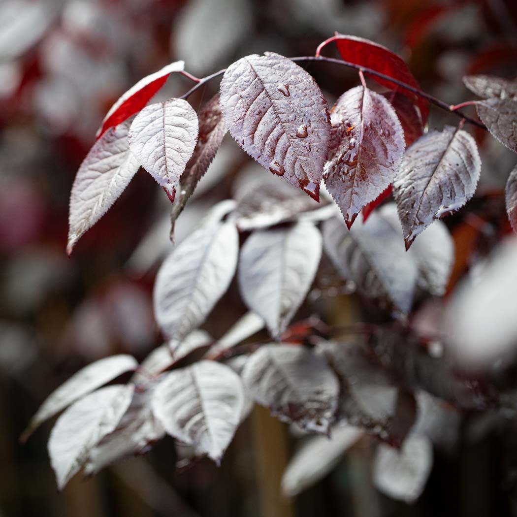 Description: Prunus cerasifera 'Nigra' is a neat round headed tree producing myriads of small pale pink flowers in late February and early March. The leaves are small and very dark purple, turning a brighter red in the autumn before falling.