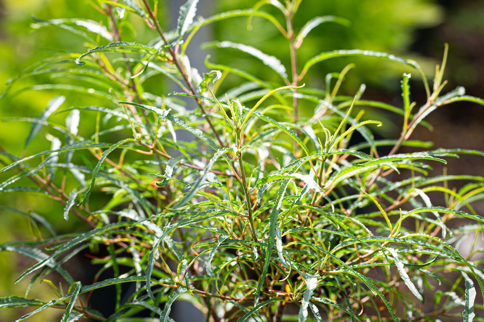 Description: Rhamnus frangula 'Asplenifolia' is a good ornamental form of the Alder Buckthorn with finely textured scalloped leaves. Attractive flowers for bees and black fruit in the autumn for birds.