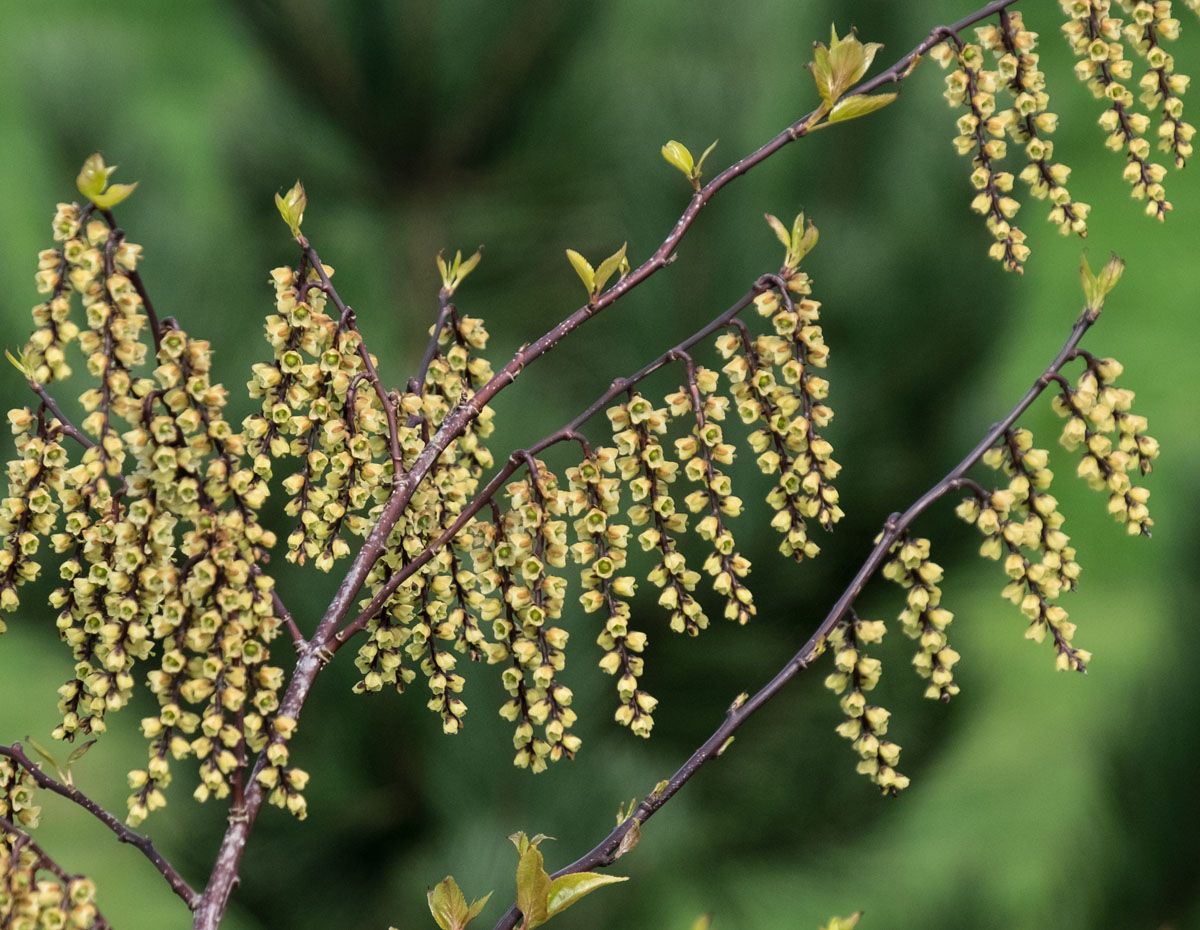 Pendant, tassel like, bell-shaped, yellow flowers in late winter-early spring. Read more