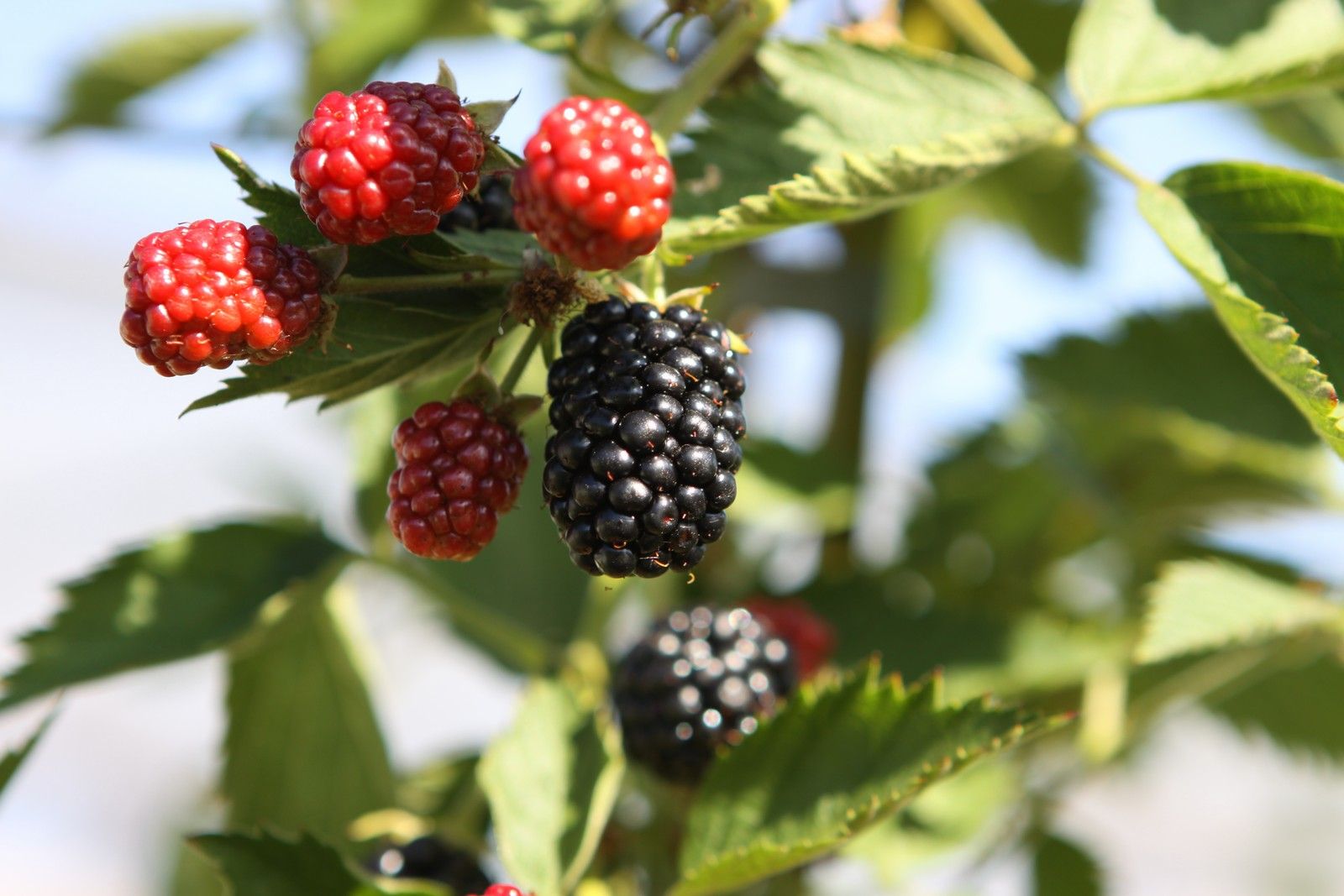 Blackberry Growing Tips: Happier planted in a sunny, sheltered site but they can tolerate light shade. Prefer moisture-retentive but well-drained soil. Blackberries are vigorous and need regular pruning. Tie in the shoots of newly-planted canes. Once they reach their first winter, cut back all sideshoots on the main cains. If you would like to eat the fruits yourself, don't forget to cover the plant to stop the birds getting them!