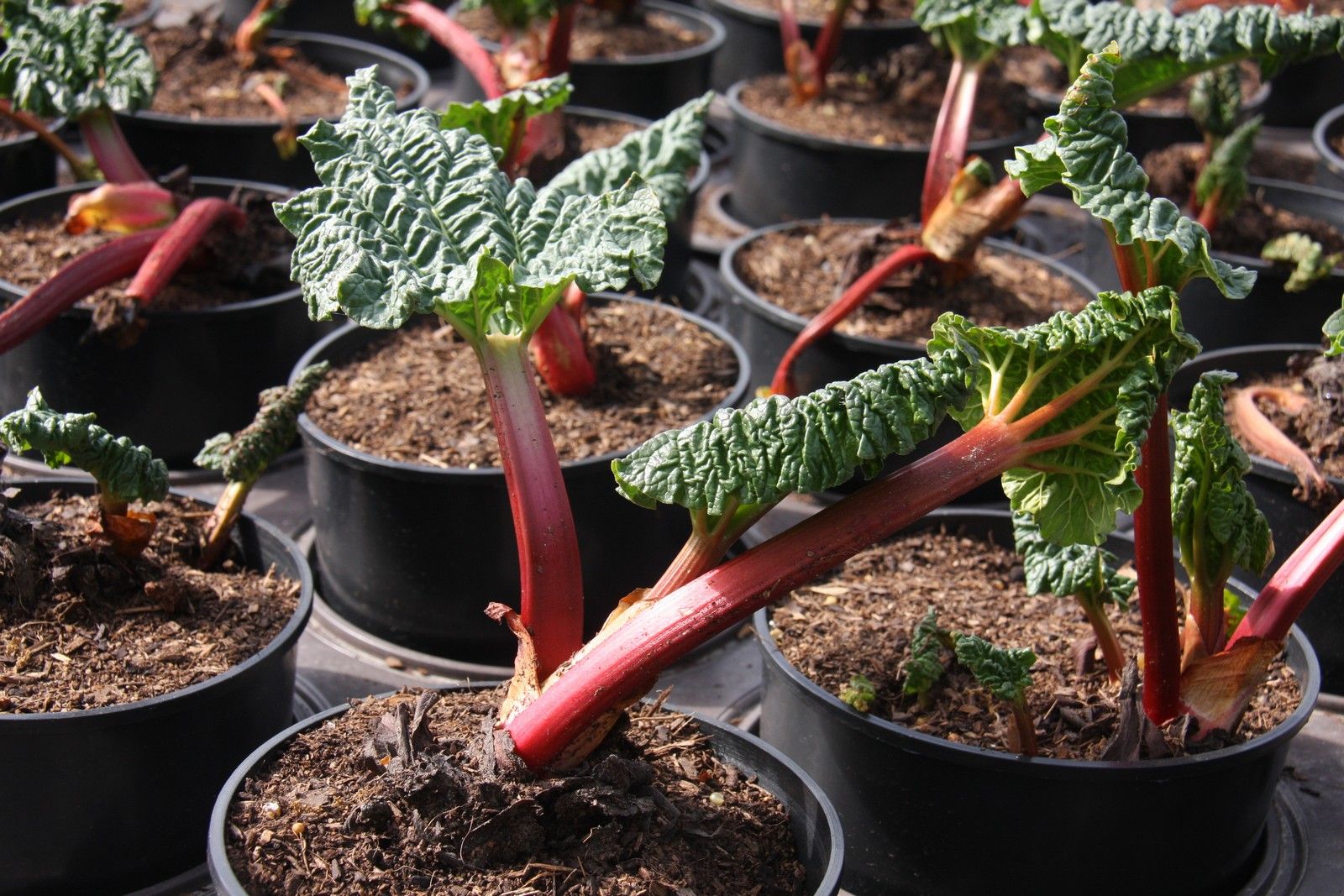 Rhubarb Growing Tips: Rhubarbs need an open, sunny site with moist, but free-draining soil. Avoid frost pockets as the stems are susceptible to frost. Do not harvest during the first year after planting as this will reduce the vigour. Once planted, it should not be moved and appreciates a generous annual mulch of well-rotted compost or manure.