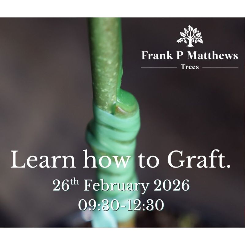 Courses at Frank P Matthews At Frank P Matthews, we believe learning helps us grow — just like the trees we care for. Our courses are designed to share knowledge, build skills, and inspire confidence in everything we do. Whether you want to learn more about tree growing or plant care, our training gives you hands-on experience and practical advice from our experts. Explore our courses below and see how you can learn and grow with Frank P Matthews. Learn how to Graft! Date: Thursday 26th February 2026 Time: 09:30-12:30 Cost: £50 per person Includes: Your own specially Grafted Tree, Hot Drink on arrival, hands-on grafting demonstration Learn how & why we graft trees: As the dormant season starts to come to an end, and spring will soon be upon us. Now is the perfect time to start to think about producing our next seasons batch of trees. Our workshop will teach you everything need to know about the Grafting methods to be able to produce a true to variety tree, why we graft trees, different techniques and ongoing care to ensure the graft takes. What to Expect Expert Guidance: Led by our Propagation specialists, this half-day workshop, includes practical demonstrations covering proper techniques, rootstock selection, why we graft, and care for strong, healthy growth. Take Home Your Own Tree: Each participant receives a Grafted tree, either one they have done themselves or by our experts. Refreshments: Begin your morning with a Hot Drink from Frank’s Kitchen. Exclusive Discounts: Enjoy 10% off any purchases in the Treeshop on the day of your workshop. What to Bring Please bring warm clothes, sensible footwear and if you wish you can purchase our Grafting Kit, so you have the correct tools, however these will be available on the day also. Winter Pruning Essentials! Date: Saturday 17th January 2026 Time: 13:00-16:00 Cost: £40 per person Includes: Hot Drink on arrival, hands-on demonstrations. Learn how & why we Winter Prune: Winter is the perfect time to start to think about pruning your fruit and ornamental trees for shape and to encourage new growth. Our course will be fully hands on covering all you need to know. What to Expect Expert Guidance: Led by our Tree Experts, this half-day workshop, includes practical demonstrations covering proper techniques for pruning, Tools needed for the job, Why we need to prune and the benefits you will see from this. Refreshments: Begin your morning with a Hot Drink from Frank’s Kitchen. Exclusive Discounts: Enjoy 10% off any purchases in the Treeshop on the day of your workshop. What to Bring Please bring warm clothes, sensible footwear, gloves and your own Secateurs, this will be out in our mother orchards so it may be wet and muddy! Events and Shows Are you interested in the shows and events we will be attending? Just click the link below to see what we have planned. We hope to see you there! Click here